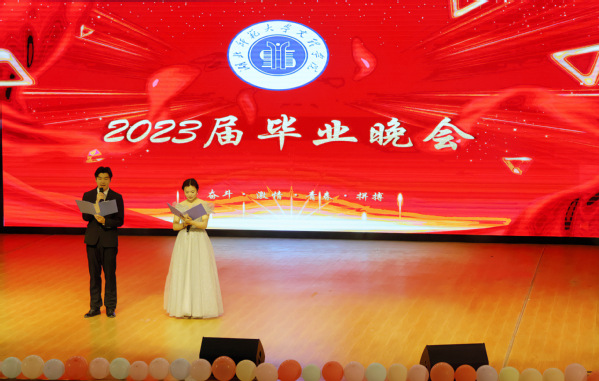 本网讯 (通讯员 梅欣琳 拍摄 黎秋杏 梁宏滨 朱羽杰)6月15日晚上七点,我校2023届毕业晚会在学术交流中心举行。校领导李开灿、杨邓红、杨之毛、张志华、王胜国及各部门各学部负责人出席了晚会。晚会由丁嫣然、吴皓主持。