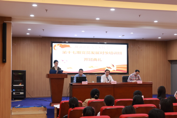 本网讯(通讯员 余复军)5月8日晚,我校在图书馆报告厅举办第17期党员发展对象培训班开班典礼。党委书记杨邓红,党委组织部、学生工作部负责人,以及第17期发展对象培训班全体学员参加了开班典礼。