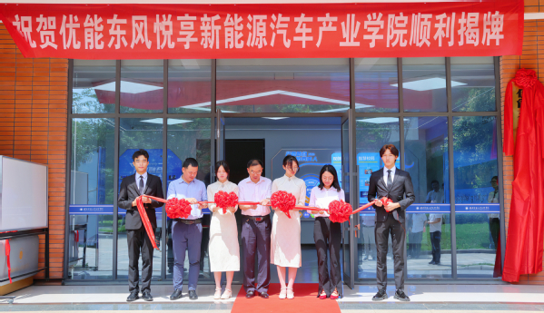 随后,湖北师范大学文理学院院长李开灿,武汉优能高教科技有限公司董事长高国虎,东风悦享科技有限公司总监王艺璇为“优能东风悦享新能源汽车产业学院”进行剪彩并揭牌。
